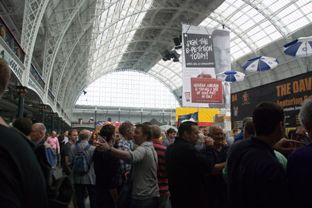 Early Tuesday morning, a delegation of Common and Port Street Beer House set out for London, to the Great British Beer Festival and a few of London’s fine beer establishments, to spread the word about IMBC (including some wonderful posters and flyers). First stop, Euston Tap, and after a lovely half, distribution of IMBC flyers and posters, we traveled on to Olympia.